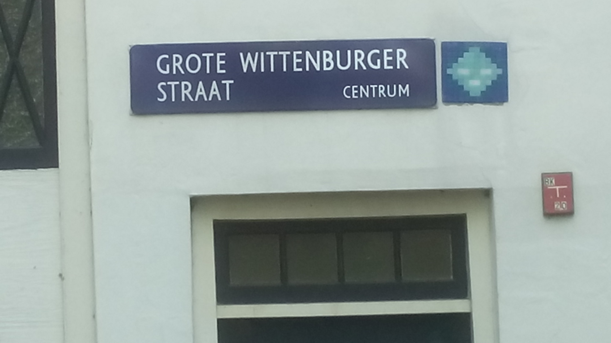 Op de Grote Wittenburgerstraat hing een space invader. De kleine mozaikjes hangen in vele wereldsteden. In het eind van de vorige eeuw is een franse kunstenmaker er mee begonnen. In Amsterdam verdwijnen ze af en toe en soms komen ze gerestaureerd terug. 2021-06-21