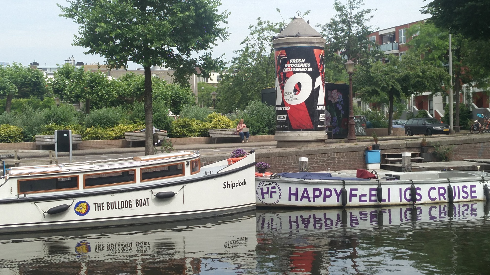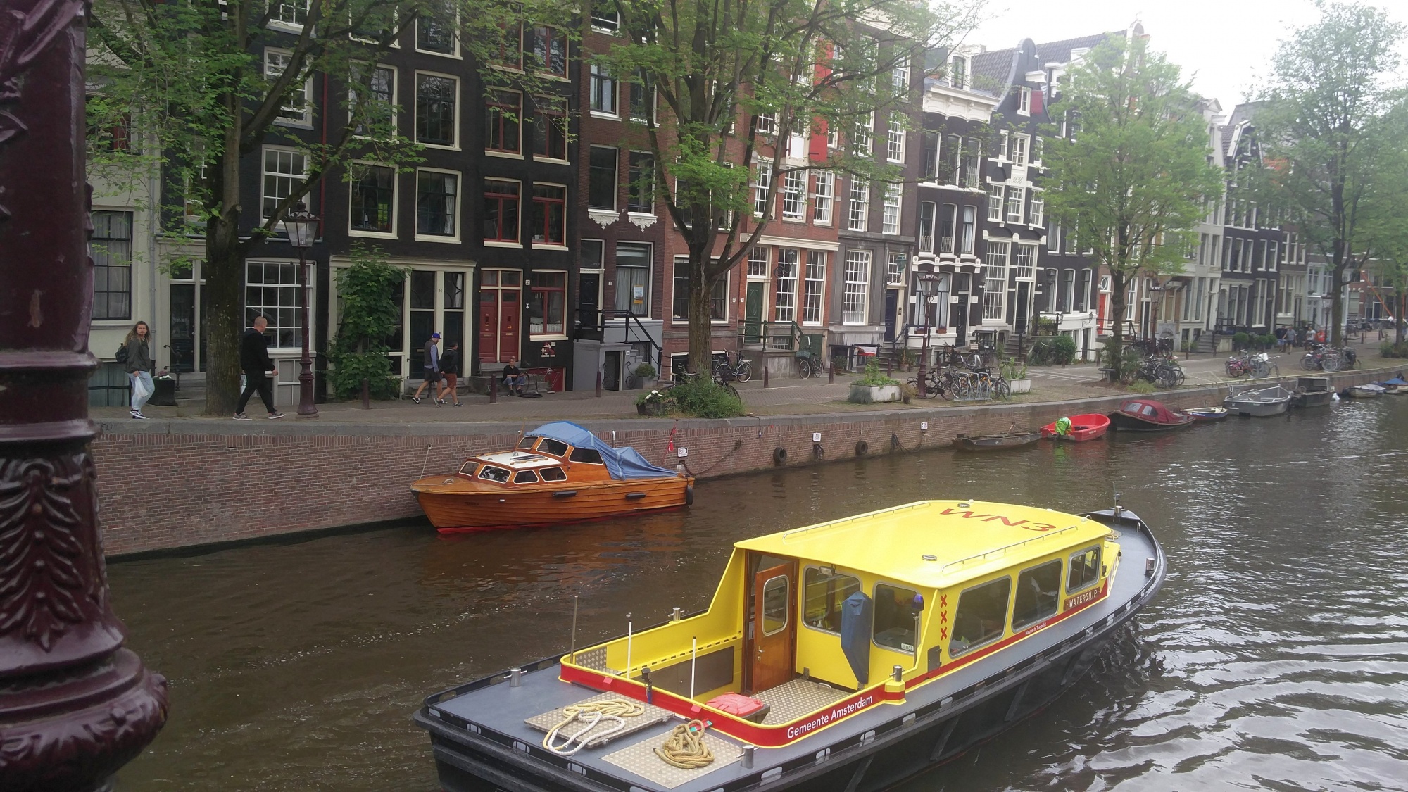 Tuintjes in het water, de kademuren in amsterdam verzakken overal. Hier is er een mooie oplossing toegepast: een stalen damwand, opgevuld met tuinaarde. De zwemtrapjes zijn ook nieuw, vroeger waren die om drenkeling een uitweg uit de gore gracht te bieden, tegenwoordig kan je voor de lol in de grachten zwemmen zonder buikloop op te lopen. O ja, geen auto's op de kade maken het plaatje bijna perfect. 2021-06-21 -